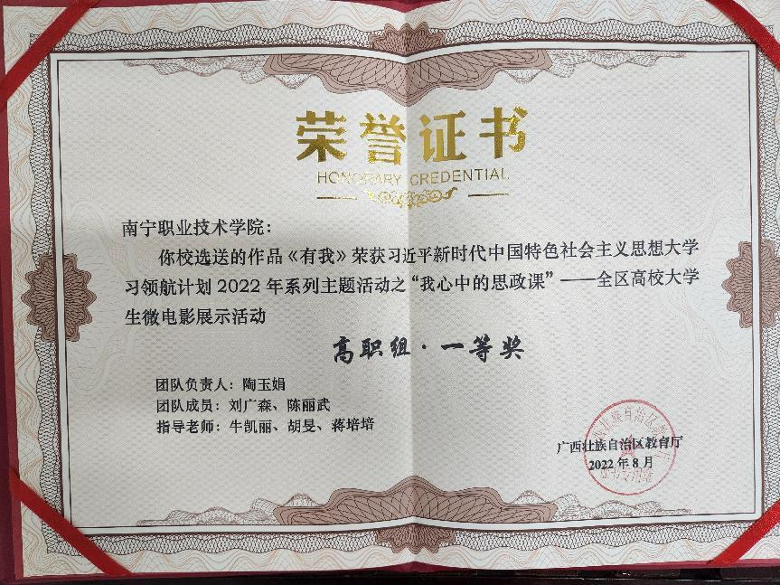 2022年公司荣获全区高校老员工微电影展示活动高职组一等奖