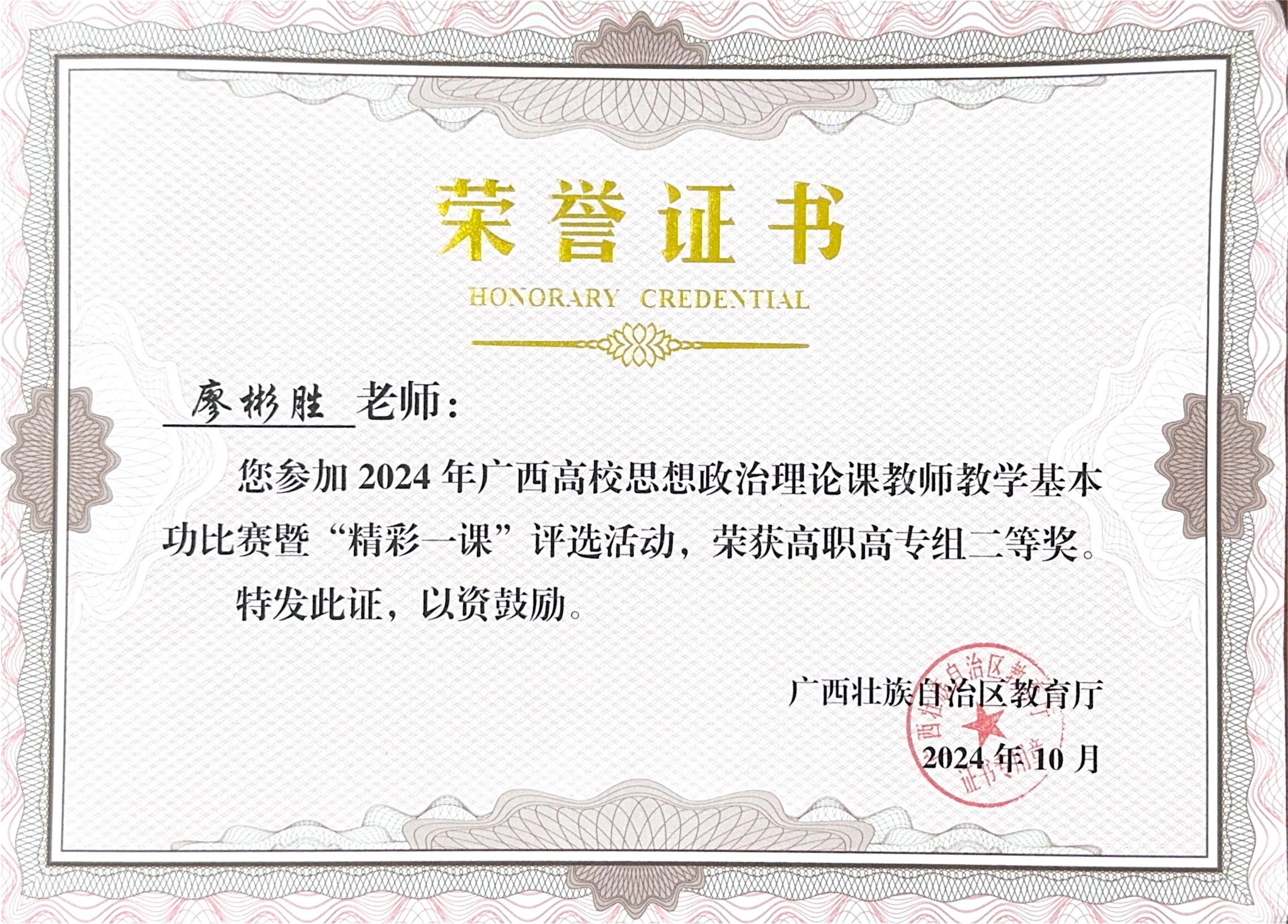 2024“精彩一课”二等奖荣誉证书(廖彬胜)