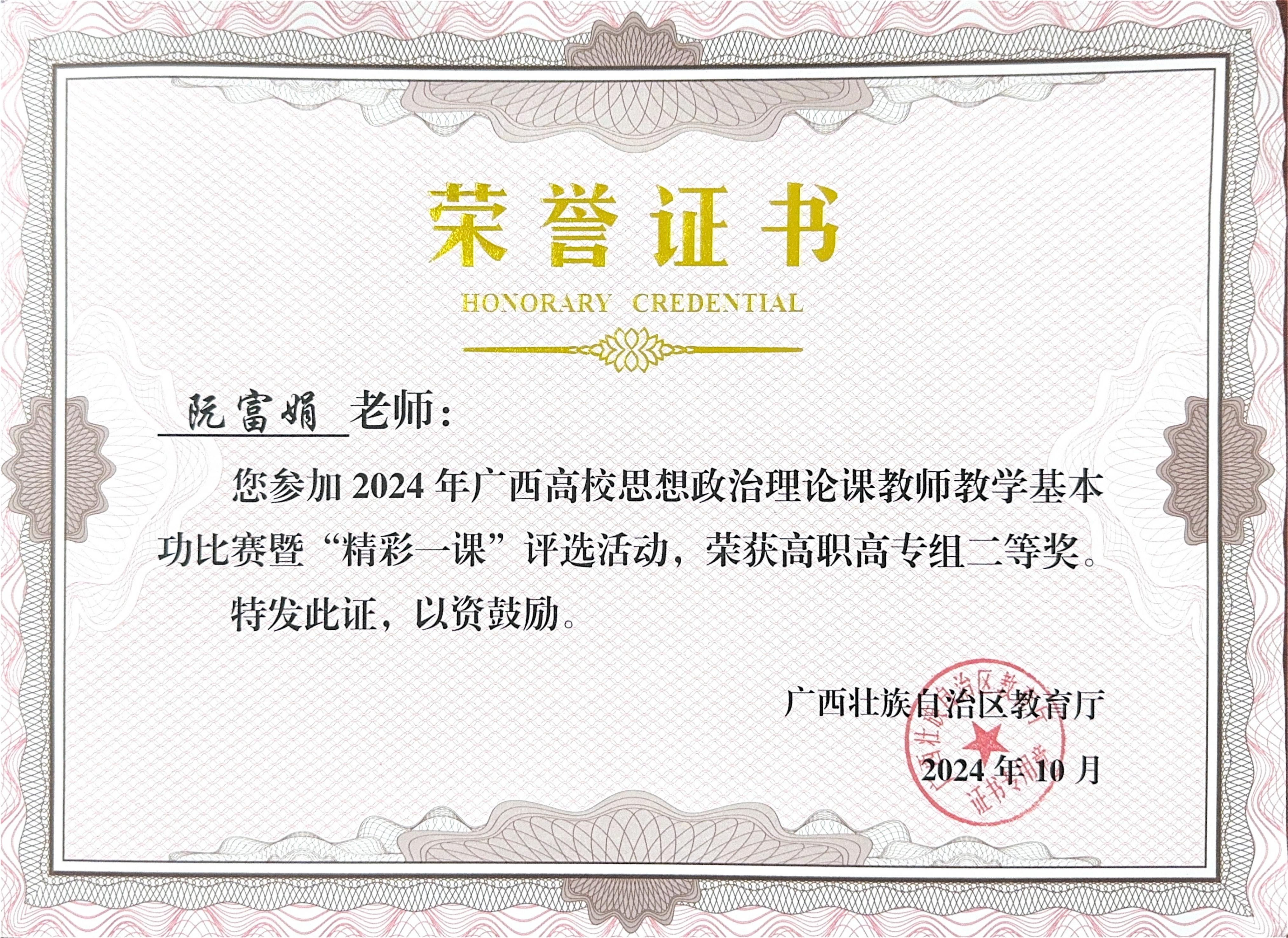 2024“精彩一课”二等奖荣誉证书(阮富娟)