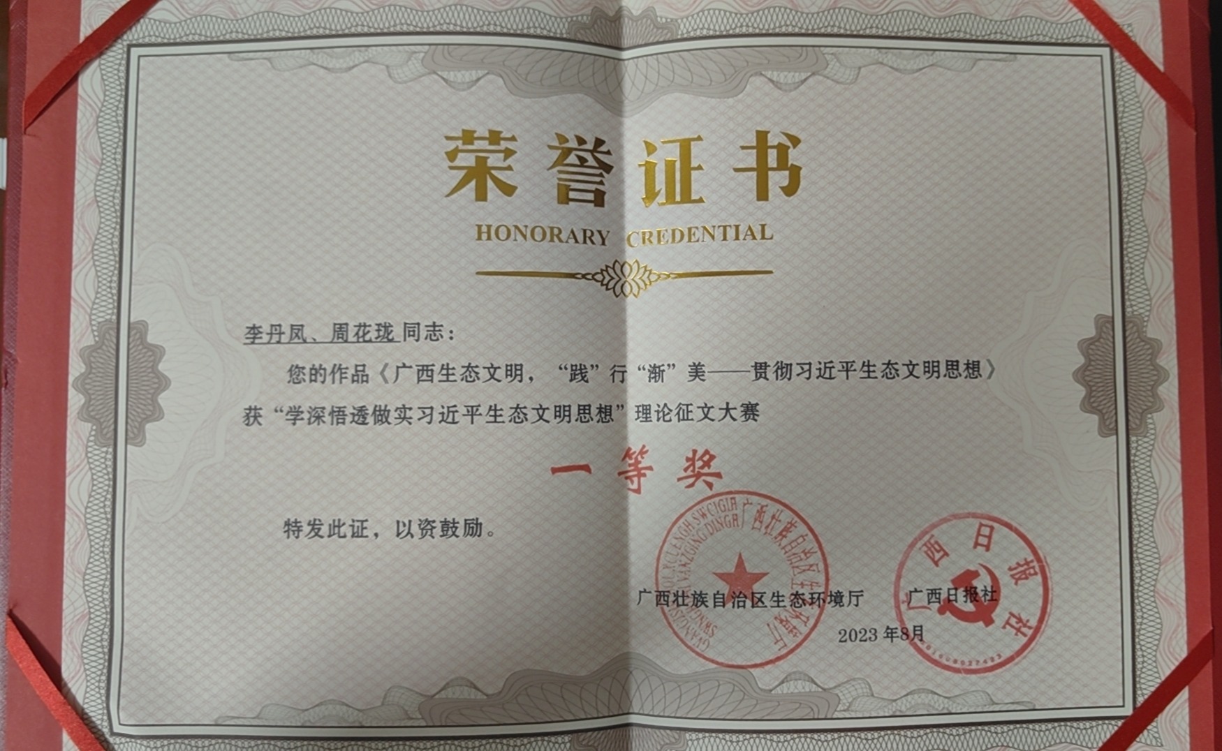 2023年李丹凤等同志荣获“学深悟透做实习近平生态文明思想”理论征文大赛一等奖