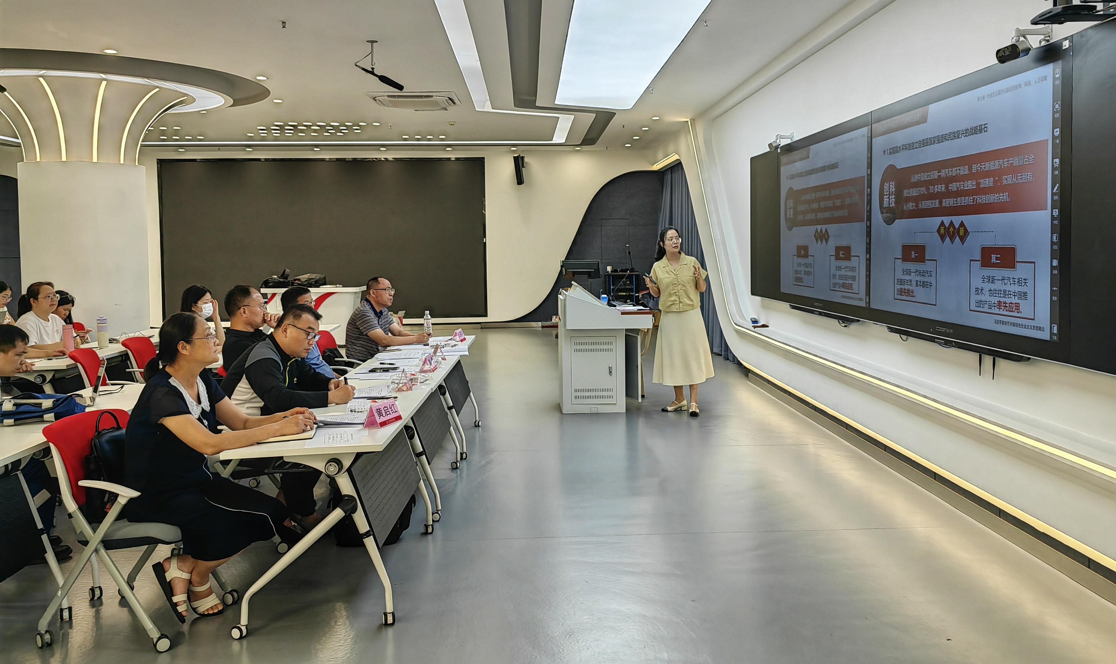 评委们在点评时强调,参赛教师很好地展示了教学设计、教学内容以及对AI的利用,今后还要继续利用AI技术不断精进教学方法,优化教学设计,要更加贴近员工,提高教学能力和教学效果,推动思政课教学质量整体提升。