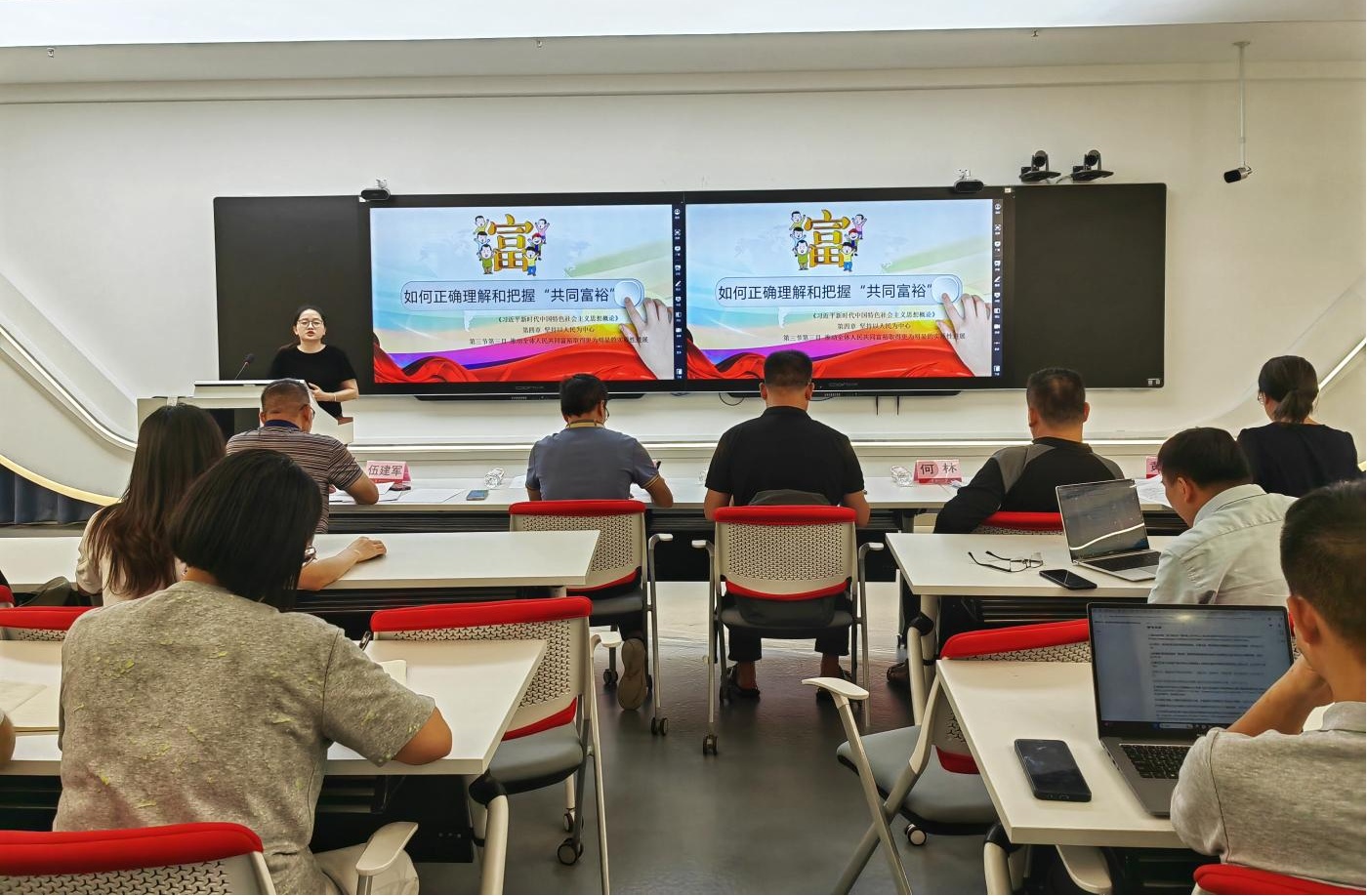 参赛教师进行了精彩的教学展示,经过评选,最终择优推荐3名教师参加共建院校思政课“萌新磨课”赛道、“骨干练兵”赛道的决赛。