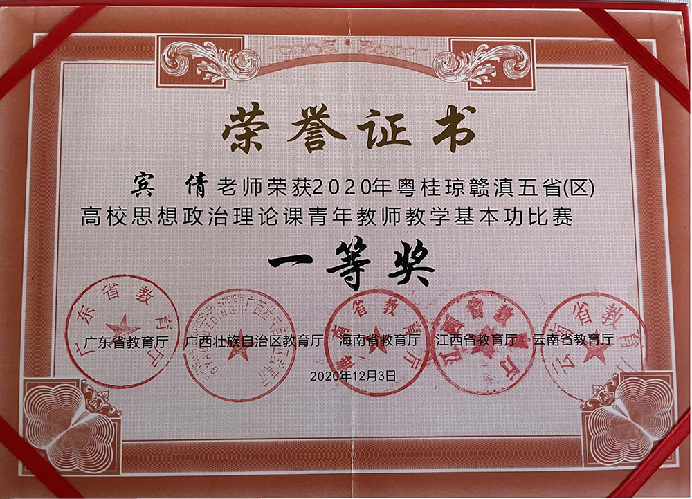 2020年粤桂琼赣滇五省(区)高校思想政治理论课青年老师教学基本功比赛一等奖