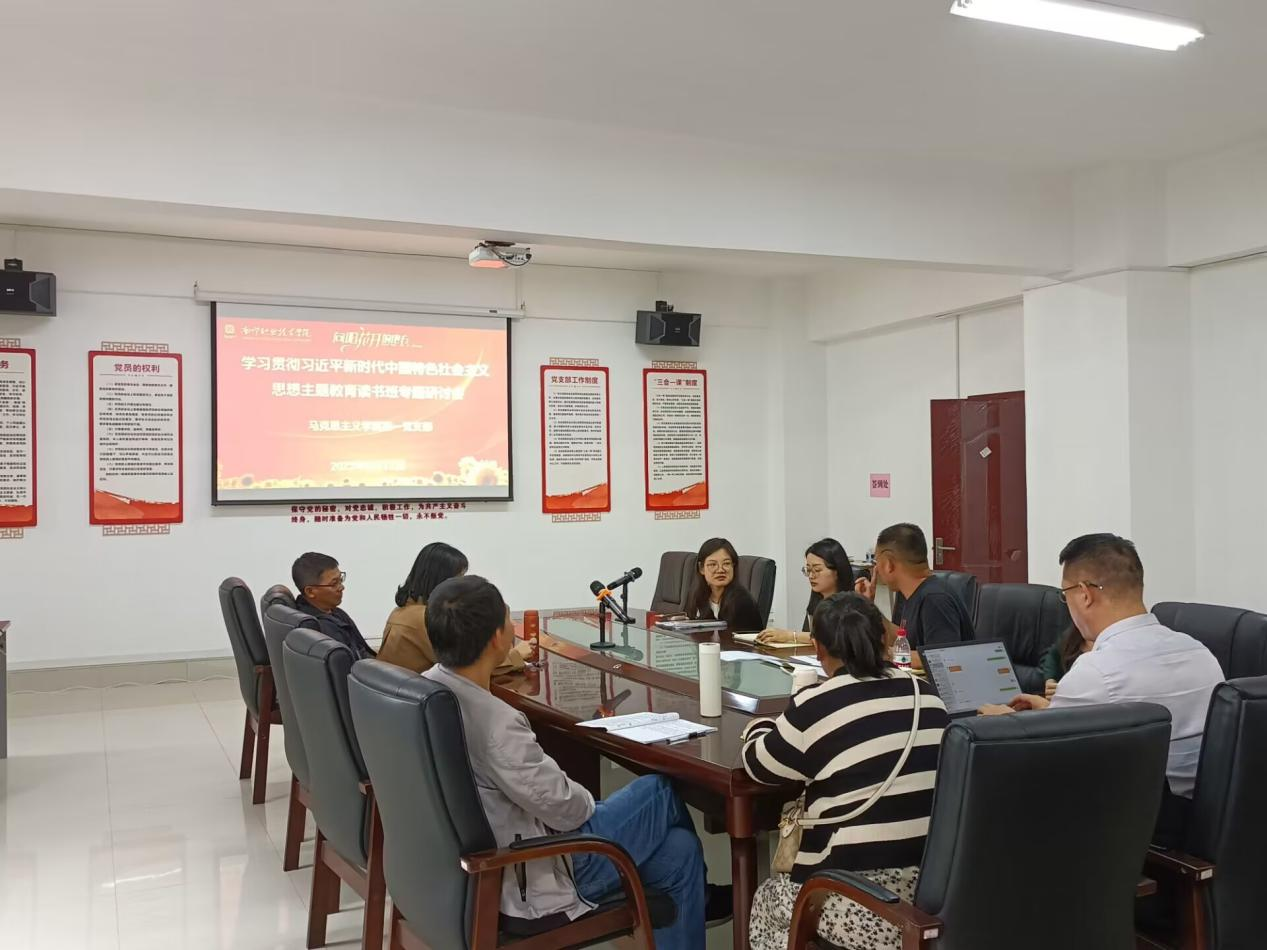 会上,全体党员分别就《习近平著作选读》、《习近平新时代中国特色社会主义思想的世界观和方法论专题摘编》等重要内容进行学习交流和收获分享。支部书记赵辉强调,读原著、学原文、悟原理,是党的理论武装工作的优良传统,党员同志要学思践悟抓好理论学习,要深入教育一线开展调研,积极推动思政课课堂教学改革。
