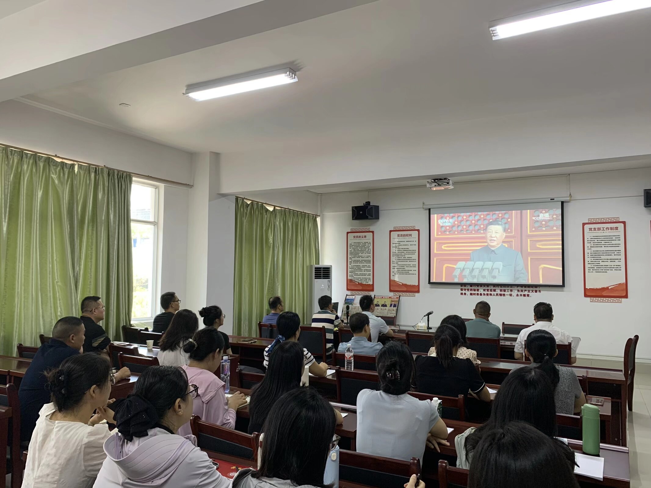 全体党员认真聆听了习近平总书记在大会上的重要讲话,跟随直播镜头感受阅兵现场的震撼场面。随着一个个受阅方阵迈着铿锵步伐通过天安门广场以及新型武器装备的全面亮相,每一位党员同志由衷感到自豪与骄傲。