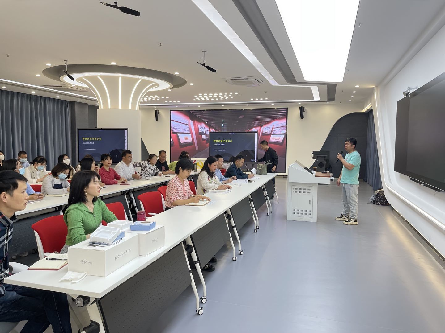 培训内容主要围绕智慧教室信息化教学、AR虚拟沙盘、VR虚拟仿真等智慧教室终端设备应用与操作。通过以AR互动屏、VR虚拟仿真体验打造“沉浸式”思政课堂、多场景式分组研讨教学、智慧教室录播、实时教学导播等开放式教学的学习,老师对信息化与思政课教学深度融合有了更深入的理解,进一步促使老师利用智能平台进行课堂教学改革创新,以信息化推动思政课高质量发展。