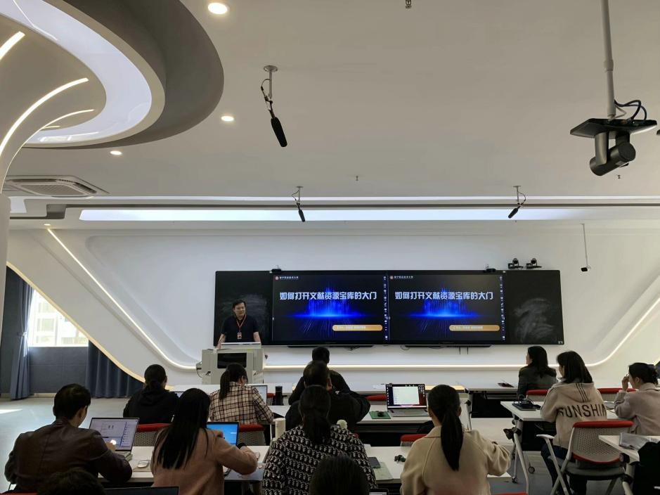 廖建威老师进行图书馆数据库使用培训(苏桂宏/摄)