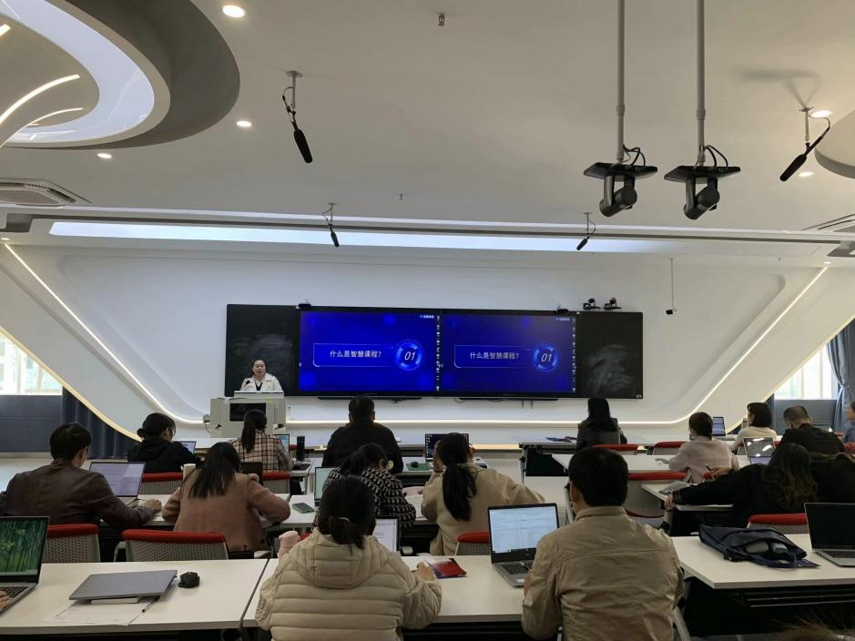 廖玛莉老师以《什么是智慧课程》为题,重点介绍了知识图谱的开发与应用、数字教材平台使用,举例演示知识图谱在教学比赛中的设计、开发,详细讲解了知识图谱的建设与教学应用。